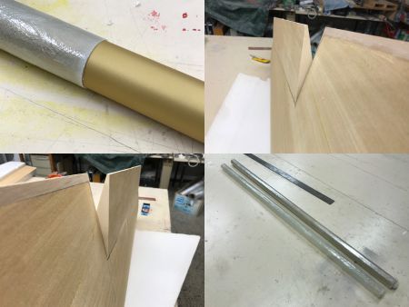 Das mit dem gestern laminierten Rohr hat mir doch eine Ruhe gelassen und ich fahre heute außerplanmäßig in die Bauräume. Die äußere Folie wird von Rohr abgwickelt. Dann geht es an das Lösen vom inneren Rohr. Voller Erstaunen lässt sich dieses, durch leichtes Drücken, aus dem GFK-Rohr herauslösen. Das Herausfummeln der inneren Folie geschieht mit einem langen 5mm Federstahldracht. Mit diesem kann alle Folie durch das Rohr gestoßen werden. Gleich wird das Rohr in die geschnitte Aussparung vom Flügel geschoben. Das Rohr passt saugend in die Bohrung. Gleich wird dann noch ein zweites Rohr hergestellt, in der gleich Art, wie das erste Laminat. Danach werden die Tragflächen abgespannt. Auch diese sind toll geworden. Am Ausschlag muss noch ein bisschen nachgearbeitet werden. Dieser ist noch etwas zu klein. Das kann aber durch leichtes Nachschleifen and den Querrudern gelöst werden.
