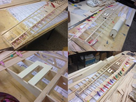 19.12.2016 - heute sind Andreas und ich in den Bauräumen. Mit dem Flügel vom Saturn geht es flott voran. An der Vorderseite der Hauptholme wurde verkastelt. Die Halteplatten für die elektrischen ezfw wurden in den Flügel eingeklebt. Am Mittelstück wurden das Messingrohr für den Flächendübel mit Uhu-Plus eingeklebt. Für die Flächenverschraubung wurde noch 3mm Buchensperrholz zugesägt und eingekelbt. Das komplette Gerippe wurde für die Beplankung schon mal leicht überschliffen, damit diese dann schön anliegt. Abschließend wurde noch die 50mm breite Endleistenbeplankung zugeschnitten und angeklebt. Erwähnt seinen noch die Fachgespräche mit Andreas nebenbei. Und schon wieder ist der Abend vergangen, wie im Fluge. Na, dann bis zum Freitag. Da hat sich Micha angekündigt.