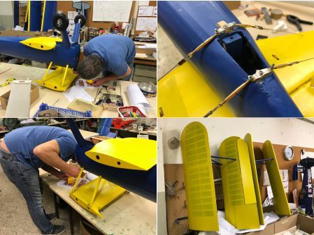 21.11.2018 - noch viele Kleinearbeiten stehen an der Stearman an. Heute ist Simon am Rudermaschineneinbau vom Höhenleitwerk dran. Danach wird die vordere Rumpfbeplankung aufgezogen. Für den Moki muss da noch Einiges verstärkt werden. Sonst fällt der Flieger schon beim Probelauf auseinander. Dann ist auch schon wieder Feierabend für Heute. Am Freitag geht es weiter.