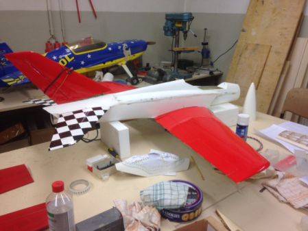 26.10.216 - An der zweiten Tragfläche wird ebenfalls ein 25mm breiter Streifen der Aufleimer herausgeschnitten und gleich ein Balsastreifen eingeklebt. Nachdem die zahlreichen Stecknadeln vom letzten Bauabend entfernt sind, werden die Übergänge eben geschliffen. Dann werden die Querruder an beiden Tragflügel angezeichnet. Mit der Laubsäge und eine rundverzahnten Sägeblatt werden die Querruder herausgeschnitten. Dann soltlen nur noch die überstehende Rippen eben geschliffen werden. Doch, da es schon wieder Feierabend ist, verschieben wir das auf das nächst Mal. 30.10.2016 - schlechtes Wetter für den Modellflug, super Wetter zum Bauen. Heute werden die Querruder fertig gestellt. An den Tennflächen kommen harte 5mm Balsaleisten hin, stirnseitig 3mm Pappelsperrholz. Als Endrippe kommt eine mit 3mm Birkensperrholz hin. Den Randbogen möchte ich nicht mehr festkleben. Dieser wird mit 2 Nylonschrauben angeschraubt. Dann kann man die Fügel besser bespannen und bei der Lagerung stören die Randbögen nicht mehr. Die Aussparungen an den Störklappen sehen auch nicht schön aus. Diese werden etwas größer ausgeschnitten und dann auf die Bremsklappe ein Streifen aus 2mm Sperrholz geklebt. Nun gefällt das auch mir. Der nächste Schritt wäre dann der Einbau der Rudermaschinen für Querruder und die Bremsklappen. Im Bereich der Bremsklappen schneide ich an der Unterseite schon mal auf und entferne die alten Bowdenzüge. Das war es wieder für heute. Noch schnell ein Notizzettel für mich geschrieben: Servokabel, Rudermaschinen. Dann kann es am nächsten Abend wieder weiter gehen. 02.11.2016 - und heute geht die Arbeit flott von der Hand. Die am letzten Abend angeklebten Randbögen werden ebengeschliffen. Ebenso die Querruder. Mit Klebeband werden diese schon an den Flügel angeklebt. Dann sieht das schon mal aus, wie ein Flügel mit Qurerruder. An der Unterseite der Tragflächen werden einige Stellen an der Beplankung ausgeschnitten, damit ich Bohrungen anbringen kann für die Servoleitungen. Nachdem die Kabel eingezogen sind wird die neue Beplankung zugeschnitten und wieder hineingeklebt. Eine Öffnung bleibt nun offen für die Rudermaschine der Bremsklappen, die zweite öffnung ist dann für die Querrudermaschine. Und schon ist es wieder nach 20 Uhr. Das nächste mal geht es weiter mit dem Einbau der Rudermaschinen. Die rote Bügelfolie ist bestellt. Ein Ende ist bald in Sicht. Ein neues Projekt wartet schon auf den Beginn. Außerdem sind heute noch Simon und Joachim in den Bauräumen. Simon passt das Schubrohr in seinen PAF - Sting ein. Joachim hatte am Wochenende einen Einschlag mit seinem Segler am Hang und bringt den heutigen Abend mit Reparaturarbeiten zu. 04.11.2016 - eine Arbeitswoche ist wieder vobei und das Wochenende wird mit etwas Modellbau eingeleitet. Heute werden die Halterungen für die Rudermaschinen hergestellt. An diese werden dann die Rudermaschinen angeschraubt. Mit 4 Schrauben wird dann die gesamte Einheit in den Flügel geschraubt. Zuerst werden nun aber die Tragflächen mit roter Solartexfolie bespannt. Die Sendung ist heute eingegangen. Leider war ich noch nicht Zuhause, um die Folie in die Bauräume zu bringen. Nicht so schlimm. Für heute ist es eh schon wieder Zeit die Heimreise anzutreten. 07.11.2016 - heute ist Simon, Joachim, Andreas und ich anwesend. Nachdem der Flohmarkt bei den Kollegen aus Aach doch sehr überschaubar war, werden heute wieder die Modelle verstaut. Simon erledigt heute den Einbau der ezfw an seinem Sting. Joachim hat am Flohmarkt eine Mustang gekauft. Diese wir heute umgebaut auf Elektroantrieb. Nachdem noch kleine Nacharbeiten am Motorspatz erledigt sind, beginne ich heute mit der Bespannung. Dieses natürlich wieder im gleichen Farbton, wie schon vor gut 35 Jahren. Nur mit dem Unterschied, damals war er Seide und Spannlack. Heute ist es Solartex Bügelfolie. Wenn Andreas heute nicht einige Lackierversuche an seinen Wirbelkeulen gemacht hätte, könnte man sogar den Zusatz "geruchsfrei" hinzu fügen. |