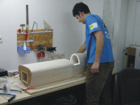 | Donnerstag Abend sind Alex, Dominik und ich auf der Baustelle. Wir fertigen für alle die Tragflächenauflagen aus 3mm Pappelsperrholz. Zusammen mit dem Befestigungsspant für den Tragflügel werden die Teile direkt auf die Kiefernleisten aufgesetzt und mit dem Styropor verklebt. Vom Motorspant aus wird alles vermessen. Im Rumpfhinterteil werden rechts und links Verstärkungen aus 3mm Balsa eingeklebt und mit Distanzstücken aus Restbalsaholz fixiert. Alex richtet schon mal alle Teile seiner "Ulti" zusammen und freut sich über den tollen Anblick. Er hat schon genaue Vorstellungen über die Farbgebung und hat hierzu auch schon ein Bild mitgebracht. Bei der gemeinsamen Pizza an diesem Abend diskutieren die Jungs über das Design ihrer Modelle weiter. | |