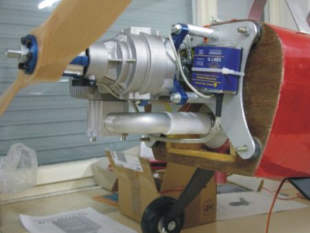 | Donnerstag - heute treffen wir uns das letzte Mal vor dem Alpinfliegen in Schröcken. Wir haben uns ein bisschen Erholung verdient. Heute bespannen wir den Rumpf und ich montiere schon mal den ersten Antrieb. Anschließend wird der 750ccm - Tank eingebaut. Laut Herstellerangaben kann auf den Motor ein Propeller von 26 Zoll Durchmesser montiert werden. Die jetzt montierte Latte 22x12, von meinem 3W-85B2 hat schon fast Bodenberührung. Vor der Fahrt nach Schröcken werden über das Internet noch das Heckfahrwerk und nochmals 10 Meter schwarze Folie bestellt. | |